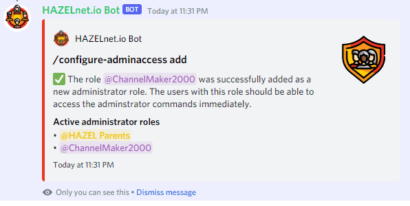 If you want to add additional roles to your Vibrant administrators, you can simply add them via /configure-adminaccess add. The role will immediately be able to use any of the /configure-… commands, provided you have also given them command permissions.
